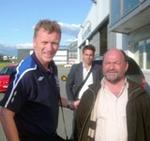 Lundi soir les joueurs d'Everton sont arrivés de Liverpool à l'aéroport de Sion. Pour les accueillir étaient là Aristide Bagnoud du FC Lens (ci-contre avec l'entraîneur du club anglais), Paul-Albert Clivaz au nom de nos six communes, Hubert Bonvin de Crans-Montana Tourisme et... Pascal Couchepin! Notre journaliste était sur place: