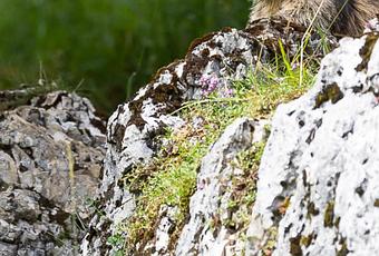 Au coeur de l’été, j’espère toujours voir une nouvelle génération de marmottes pointer le bout de son nez. La dernière portée observée dans ce terrier date de 2014, mais la forte activité printanière laissait présager de belles choses pour cette année.