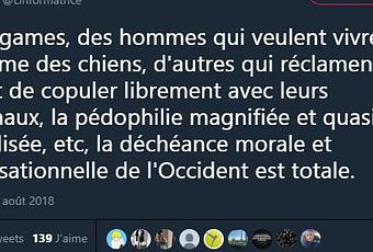… Voilà une échappée en roue libre qui se passe de commentaires, tant ce n’est empli que de dégueulasserie innommable. Il y a des lois, pour cela. Justice, fais ton travail. Quant à la modération de twitter, comment dire… Non, rien.