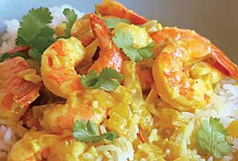 Crevettes avec lait de coco et curry au thermomix, un délicieux plat de fruit de mer,pour votre plat principal.