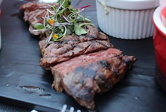 Tataki de boeuf, bouchée de poutine réinventé, Mini Burger de Boeuf et fromage bleu, Mini Burger de porc effiloché, Tartare de boeuf, canard, thon et saumon. Onglet de boeuf, Fish'n'Chip, salade de chou et sans oublier les frites et les frites de patates douces.