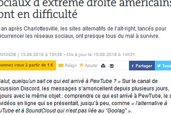 Un plaisir n’allant pas sans l’autre, où l’on apprend, après la sévère déculottée des alt-right (comprendre : nazis, si peu néos) de Washington, que les réseaux (a) sociaux dédiés aux bas du front d’outre-atlantique sont en train de tomber les uns après les autres… Victimes de la censure des gafam ? Que nenni. Vous n’y êtes point du tout ! Juste qu’ils sont victimes de leur insuccès, et qu’ils n’ont donc plus de pognon pour payer leur infrastructure… Hé oui, faut se rendre à l’évidence, les neuneus : la majorité des gens n’aiment pas les fachos… CQFD.