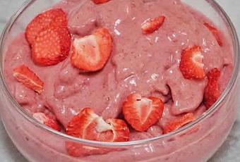 Enfin versez votre préparation dans un saladier, garnissez avec des tranches de fraise et placez le dans le réfrigérateur pendant au minimum 4 heures.