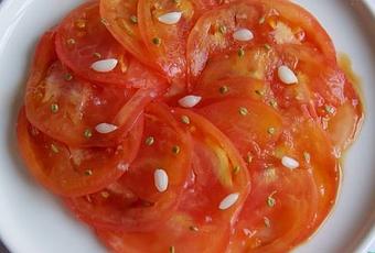 Aujourd'hui, je vous propose une Salade de tomates aux bulbilles d'ail et aux graines de Persil (Vegan) :
