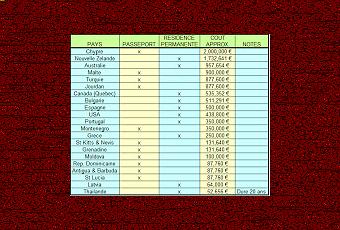 Les options les plus intéressantes sont Malte et Chypre. Leurs prix sont chers, mais d'un excellent rapport qualité-prix car ils ouvrent l'accès au reste de la Communauté Européenne.