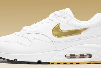 La combinaison Air Max 90/Air Max 1 dispose d’un potentiel intéressant. L’association de deux types de volume, une atmosphère rétro qui n’a jamais été aussi attrayante et un colorway OG pour parfaire le tout. Axée vers un combo lumineux qui repose sur une base majoritairement blanche la silhouette trouve son éclat dans le choix d’un Swoosh Gold. Tirant sa force d’un contraste puissant engendré par l’isolation de la nuance Gold au centre de l’upper ce modèle propose tout de même quelques échos à cette teinte or, notamment au niveau de la broderie branding du talon ou plus discrètement sur la semelle extérieure. Cette Nike Air Max 90/1 Metallic Gold OG est d’ores et déjà disponible à la vente sur le shop online de Stadium Goods pour 140 euros.