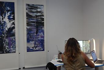Pour le vernissage, Marie Camus et Julien Levet, les maîtres de cérémonie, avaient largement ouvert les portes de ce lieu magique. Jugez-en par vous même : de grandes vitrines, baignant la salle d'une lumière naturelle et généreuse, des murs immaculés, un mobilier discret aux teintes harmonieuses, une cuisine, même, s'intégrant parfaitement à cet espace voué aux échanges, à la rencontre.