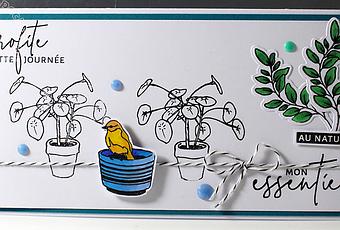 Hello ! Au mois de Juillet sur le forum Scrapboo‘kit, je proposais une carte à la chaine avec des consignes. Voici celles proposées : – Une carte format 10.5 x 21 – un matage – de la ficelle. La carte que j’ai réalisée