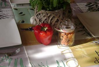 Pour commencer une nappe avec des motifs sur le thème de l'olive