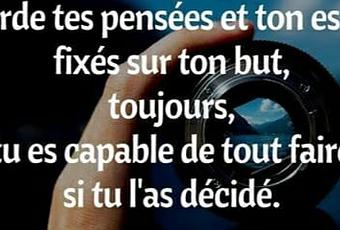 N'abandonne jamais ! Garde tes pensées et ton esprit fixés sur ton but, toujours. Tu es capable de tout faire si tu l'as décidé.