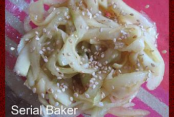 Placer les tagliatelles de concombre dans un saladier (version rapide) ou dans une passoire avec une pincée de sel et laisser dégorger pendant 15 min (version longue).