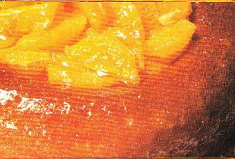 Peler 5 oranges, les couper en quartiers et faire macérer dans un sirop préparé avec 1/2 verre d’eau, 100 g de sucre, un verre à liqueur de kirsch.