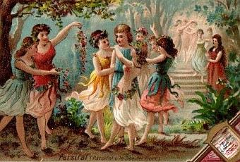 Chromos Liebig - Scènes d'opéras de Wagner - Parsifal dans le jardin de Klingsor.