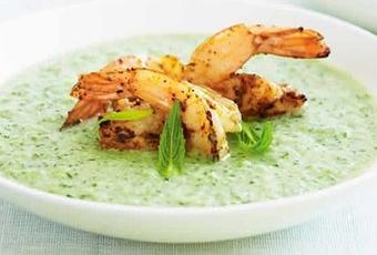 Soupe de concombre et crevettes au thermomix, une délicieuse soupe de légumes et fruit de mer.