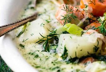 D'abord commencez par, couper les filets de saumon en gros morceaux, poireaux en morceaux, peler et couper carottes en rondelles, pommes de terre en dés.