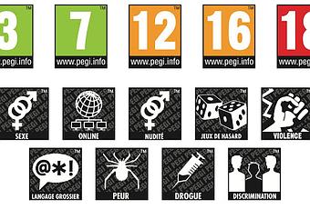 En plus de donner l'age conseillé pour un jeu (3, 7, 2, 16 ou 18 ans), il permet aussi de donner des informations pour savoir si le jeu sera violent, avec un langage grossier ou l'utilisation de drogues.