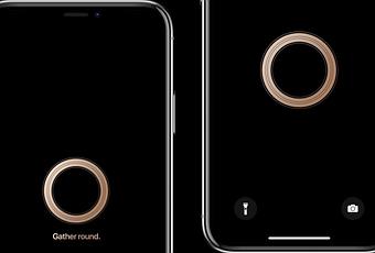 Le carton d'invitation représente un visuel circulaire de la forme du bâtiment principal de l'Apple Park, avec pour seul indice : "Gather round", exprimant la notion de rassemblement.