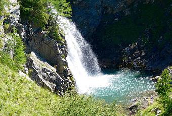 Au bout d'une heure et demi de marche parmi la nature sauvage du Parc National des Ecrins, c'est l'arrivée à la cascade ...