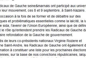Aux côtés de leurs co-présidents nationaux Virginie Roziere et Stéphane Saint-Andre, les Radicaux de Gauche ont également dit leur détermination à constituer une liste pour les prochaines élections européennes, sur la base de nos convictions républicaines, laïques et solidaristes, tout en appelant à l’union de la Gauche. »
