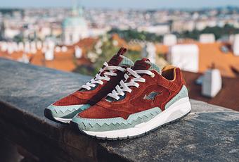 Le syndrome de la feuille blanche n’intervient que rarement lorsque l’on propose à des passionnés d’imaginer leur propre paire. Les gérants du magasin Footshop ont ainsi décidé de s’inspirer de leur ville de Prague, où ils ont commencé il y a 7 ans, pour réinventer la Ultimate 3 de KangaROOS. La paire puise son inspiration dans la typicité des toitures qui composent la capitale Tcheques. Parfois complètement refait à neuf, mais bien souvent très oxydé, on retrouve ces tuiles dans une association de vert et de brun. Ce mudguard légèrement morcelé représente les toits en formes de flèches qui constituent la ligne d’horizon de la ville.