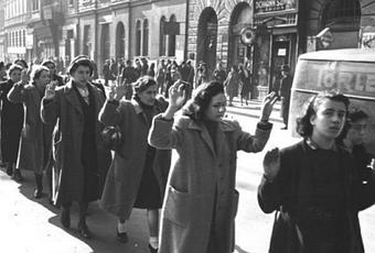 Pendant les douze premières heures du gouvernement Szalasi, leur chef, les Croix fléchées massacrent plus de 300 Juifs à travers la ville. A partir du 20 octobre, les rafles commencent. Fin octobre, les gardes Croix fléchées ont déporté 35 000 Juifs de plus, hommes, femmes et enfants. Les rafles se multiplient et les Juifs sont acheminés vers la frontière autrichienne lors d'abominables marches de la mort.