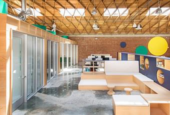 Aujourd’hui nous vous emmenons à Los Angeles pour découvrir une école un peu particulière. Organisme à but non lucratif, 9 Dots est une école ouverte à tous pour former les adolescents au codage informatique. Pour aménager cette école pas comme les autres, les architectes et décorateurs de l’agence « Design, Bitches » (nous vous passons la traduction) ont totalement rénovés une structure industrielle vierge de plus de 1000 m². Ce bâtiment offrait des caractéristiques très intéressantes : un plafond incurvé à double hauteur recouvert de lambris de pin Douglas, une belle série de fenêtres, de conduits métalliques, de poutres apparentes et d’un sol en béton. Ce que nous avons aimé et nos conseils déco juste après la visite en images :