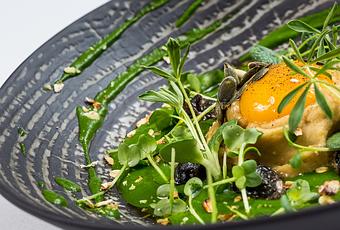 L’homme est très concerné par la nature et l’environnement. Il travaille avec des jeunes agriculteurs d’un domaine voisin qui emploie des jeunes passionnés eux aussi. Les légumes et les herbes sont magnifiques et d’un goût puissant et originel. Le chef ne les traite qu’a minima pour en conserver la saveur première.
