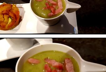 5- Au moment de servir faire cuire les allumettes de bacon et les répartir sur la soupe.
