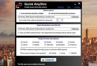 Il fonctionne de façon très efficace et peut même régler automatiquement l'image en fonction de la position souhaitée. La conception de Quick Any2Ico est extrêmement simple car il affiche toutes les informations pertinentes immédiatement sur la même fenêtre.