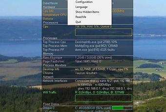 Il peut être utilisé par tous, sans connaissances particulières mais il satisfera aussi les utilisateurs avertis qui pourront personnaliser entièrement l'affichage des éléments, la position, les polices, les couleurs, les tailles, les temps de rafraîchissement, le statut du logiciel.