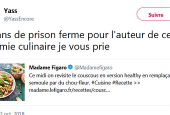 Cette histoire de coucous healthy a sans doute pris sa source dans le taboulé détox qu'on voit un peu partout depuis 5 ou 6 ans. Du coup, variantes et déclinaisons, healthy, vegan, new age posent l'éternel problème philosophique de la dialectique entre le même et l'autre. Imaginez que je change une pièce défectueuse à ma voiture, une aile, une portière, une vitre. Personne n'ira dire que ce n'est pas la même auto. J'en change une seconde, un rétro, un phare, une poignée. C'est encore OK. Mais si je remplace une à une toutes les pièces de ma voiture, au bout du compte, j'aurais un véhicule totalement différent de celui que j'avais à l'origine. le même ? Un autre ? A partir de quel moment peut-on affirmer : "voilà, c'est un autre." ? Et moi-même, qui change sans arrêt depuis ma naissance, qui évolue de jour en jour, qui n'ai aucune cellule commune avec celles que j'avais il y a seulement un an. Suis-je toujours le même, suis-je devenu un autre ? Orthodoxie, déviance, schismes, ce couscous clivant est un vecteur de diffraction sociale : une vraie bombe culinaire !