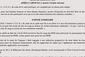 Don du sang: La durée d’abstinence demandée aux homosexuels pourrait être alignée sur celle des hétérosexuels. Hier, à l'assemblée nationale, a été adopté en commission un amendement du député Saulignac allant dans ce sens.