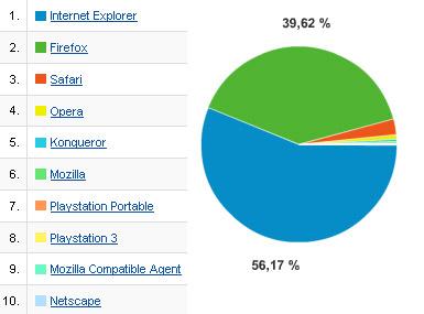 Les utilisateur de IE représentent 56,17% tandis que ceux qui utilisent Firefox ont une proportion de 39,62 %