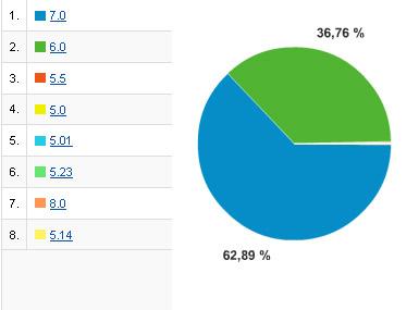 Si l'on considère les seuls utilisateur de Internet Explorer, il est heureux de voir que les détenteurs de la version 7(62,89 %) ont largement dépassé les possesseurs de la version 6 (36,75 %) qui feraient bien d'abandonner une fois pour toute cette calamité !