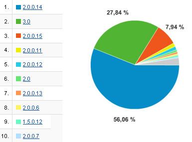 Un reproche qui était fait lors du lancement de cette version est l'incompatibilité de la version 3 avec certaines extensions. J'ai donc attendu un peu avant de passer le pas. En fin de course, une seule extension n'a pas été acceptée. Grande satisfaction. En ce qui concerne les statistiques de visite de notre blog, voici ce que nous npermet de voir Google Analytics :
