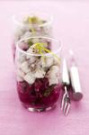 - Répartir les betteraves au fond de quatre verrines.