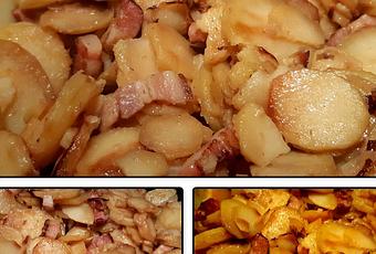 7- Ajouter les pommes de terre et les lardons.