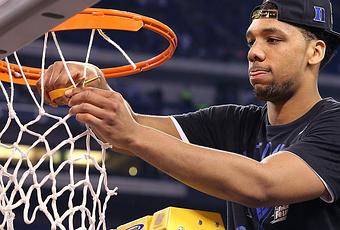 Cette tradition nous vient tout droit des Etats-Unis et plus particulièrement du basketball universitaire. En effet, un des joueurs de l'équipe victorieuse du championnat NCAA monte sur un escabeau et coupe le filet de l'un des deux paniers. Ce rituel se nomme outre-Atlantique : " Cutting down the net " . Celui-ci remonte à 1947 où le coach de l'Université de North Carolina, Everett Case, fut le premier à vouloir un ramener un souvenir lors du titre.