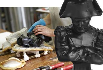 A l’image du dictateur et ses nombreux stratagèmes, chaque buste est unique : moulé à la main dans les ateliers Cire Trudon, en Normandie, une ouvrière spécialisée passe ensuite une demi-journée en sa compagnie pour l’apprêter, et l’apprécier à sa juste valeur. Démoulage, séchage, et reprise des moindres finitions à la main, Napoléon renoue avec son tempérament singulier. Au milieu de son bicorne, une mèche permet de raviver son esprit: allumée, elle se consumera jusqu’à le décapiter.