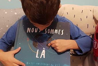 Alors que trouve-t-on dans Nous sommes là ? Du documentaire qui se raconte comme une histoire, attachante et affectueuse et qui nous apprend ce qu'est la planète Terre, le système solaire, l'espace, puis ce qu'il y a sur notre Terre : la mer, les animaux, la diversité humaine, animale, le corps, les étoiles, le temps qui passe, notre perception du monde... Le tout ponctué d'une tonalité rassurante, apaisante, qui donne des conseils et qui guide l'enfant. C'est très touchant car c'est aussi un album intimiste rempli d'amour, de respect, de tolérance et de bonté. Le message est fort et magnifique, il est beau et bon.