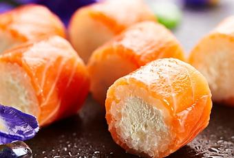 2. Mélangez le vinaigre, 2 cuillères à café de sel et le sucre. Versez sur le riz, mélangez puis laissez refroidir. Etalez le riz sur les tranches de saumon, tartinez-les d’un peu de fromage puis roulez.