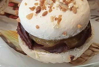 Remplir votre poche à douille cannelée et garnir généreusement l’une des moitiés de coque de votre macaron.