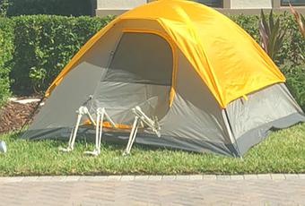 Ses voisins ont effet installé une scène d' Halloween sur le gazon devant leur maison. Jusque là, rien de bien original. Sauf que les squelettes changent de postures tous les jours en attendant le 31 octobre. Un jour ils sont en train de bronzer, le lendemain ils font de la gymnastique ou sont habillés en rappeurs, un autre ils font du camping... Bref, une mise en scène différente chaque jour qui fait le bonheur des résidents.