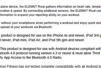 Il faut rester prudent. Je ne sais pas de quand date ce manuel d'utilisateur de l'Elemnt Rival et il est tout à fait possible que les spécifications aient évoluées depuis. Néanmoins, on y trouve des infos intéressantes sur la place qu'elle pourra prendre dans le paysage déjà très chargé des montres GPS.