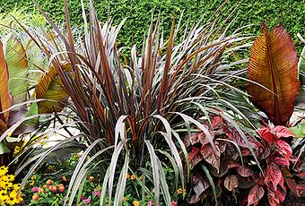 Sa couleur pratiquement noire est ce qui retient en premier l’attention. Par la suite, on remarque son feuillage central érigé comme une épée et sur le pourtour, un port légèrement arqué. Une nouveauté qui s’est vue remettre le titre d’Exceptionnelles 2014. Parfait pour les contenants ou les massifs.