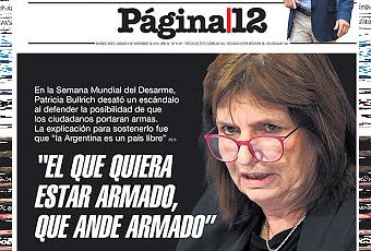 Au sortir d'un dîner avec d'autres membres du gouvernement dans un restaurant de Río Cuarto, dan la province de Córdoba, la ministre de la Sécurité, Patricia Bullrich, a accordé une interview à la presse où elle a déclaré que l'Argentine était un pays libre et que par conséquent si les citoyens voulaient s'armer, pourquoi pas ? Au sein d'un gouvernement qui prétend lutter contre l'insécurité et la violence dans le pays !
