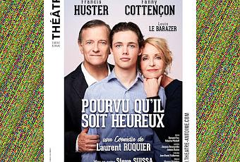 Pourvu qu’il soit heureuxUne comédie de Laurent Ruquier.Avec Francis Huster, Fanny Cottençon et Louis Le BarazerMise en scène de Steve SuissaAvec la participation artistique du Studio d'Asnières-ESCADu 13 septembre au 31 décembre 2018Du mardi au samedi à 21 heures, samedi et dimanche à 16 heuresAu Théâtre Antoine14 boulevard de Strasbourg - 75010 Paris - 01 42 08 77 71