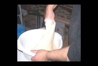 Reprendre alors la bassine et commencer le pétrissage proprement dit ! Au bout de cinq minutes on ajoutera 25 g de sel ! La pâte ne doit pas être trop dure elle doit coller aux mains et à la bassine en début de pétrissage et devenir totalement lisse au bout de 20 minutes à peu près ! Le pétrissage est alors terminé !