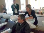 L’Oréal Paris Professionnel lance une gamme de produits pour les hommes destinés aux coiffeurs. Je ne suis pas sûr de bien comprendre pourquoi, mais l’équipe a décidé qu’il était important que les blogueurs en parlent et a donc invité des chevelus représentants de la gent masculine online à une présentation. L’info “spécial blogueurs” était la disponibilité d’une application iPod pour retrouver facilement le coiffeur le plus proche équipé de produits L’Oréal. Mais c’est surtout la présence de coiffeurs et de l’équipe de pro L’Oréal qui a occupé la soirée. D’abord avec la démo du produit 5′ Cover sur un mannequin très équipé niveau poivre et sel. Et ensuite en prenant en main les blogueurs les plus téméraires pour des coupes plus ou moins sages.