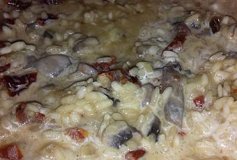 Cette fois-ci, le risotto sera à la tomate confite et aux champignons de Paris.